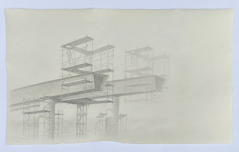 Brücke, Bleistiftzeichnung, 2025, 26,5 x 45 cm